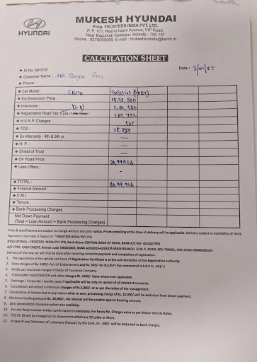 | Bengal Hyundai | ₹50,000 | White and Khaki Colours |